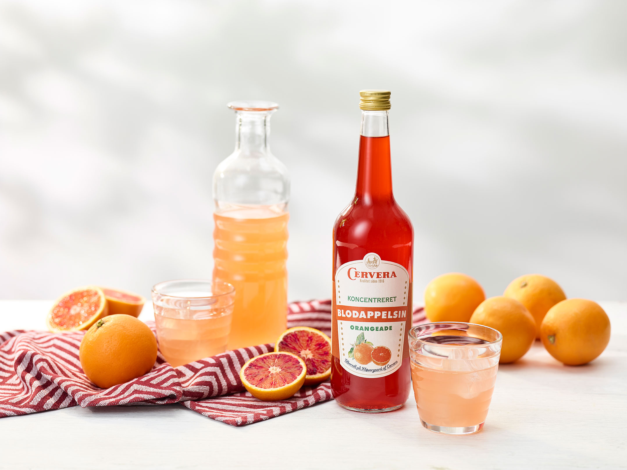 Cerveras blodappelsin orangeade smager bare godt. Denne blodappelsin orangeade er perfekt på en varm sommerdag, hvor den både kan nydes med vand, danskvand eller som en drink. 1 del koncentrat til 7 dele vand.