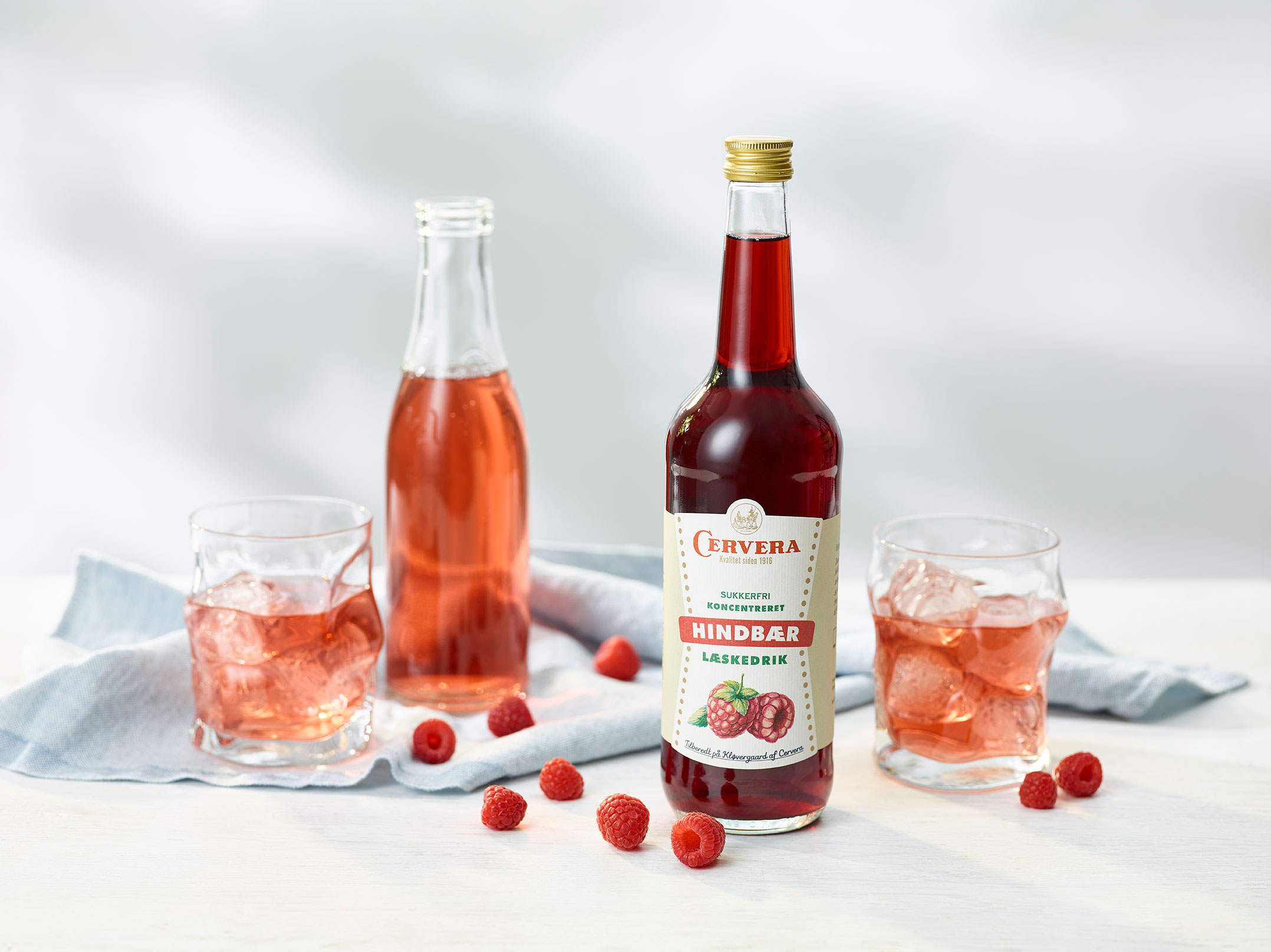 1 dl Cervera Koncentreret Hindbær Læskedrik (med eller uden sukker)