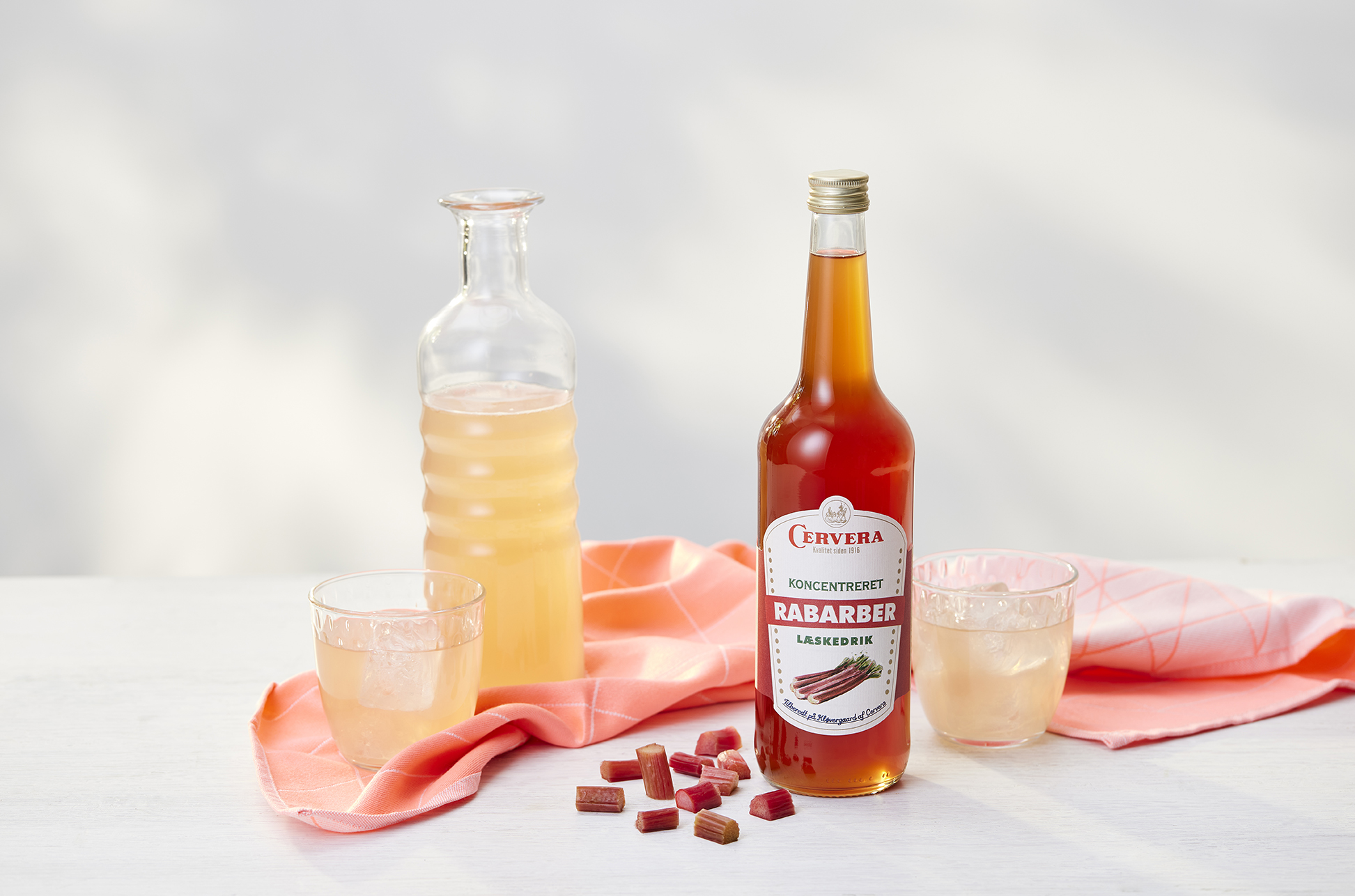 Sød og syrligt rabarber læskedrik som opblandes 1:7.
