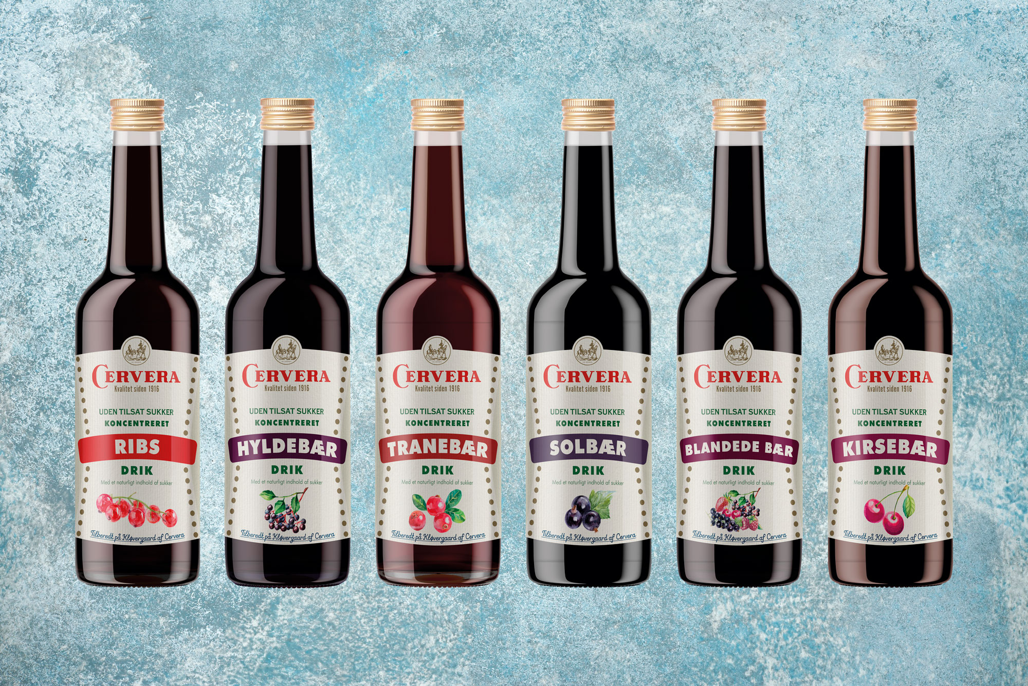 Cerveras koncenterede safter uden tilsat sukker er ikke-drikkeklare safter med et naturligt indhold af sukker.